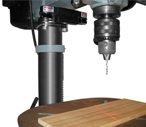 This Universal Drill Press Laser projects a thin set of cross-hairs onto your drill press table precisely where the drill bit will contact the work piece. It allows the user to quickly position and clamp the work piece in place, so that the hole is drilled exactly where needed. This eliminates the need to repeatedly lower the bit to the surface and align the tip of the bit to the desired hole location.