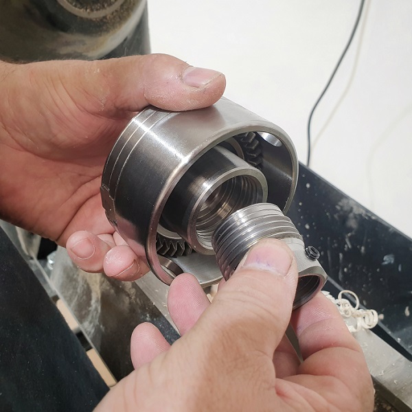The insert fits into the back of the chuck and onto your lathe headstock spindle. The inserts are threaded both inside and out. The outside thread is made to fit into the NOVA Chucks. The inside thread comes in a variety of sizes. The size you need is determined by your lathe spindle thread size. See the insert thread chart below.