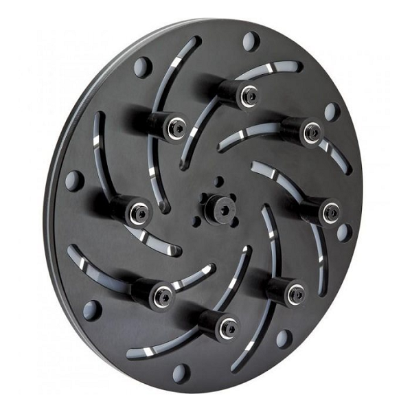 The chuck is mounted using the boss on the rear of the chuck into a standard self-centering scroll chuck, fitted with standard 50mm or 2" jaws. The self centering scroll operation quickly adjusts to mount the work and tightening the buttons only takes a few seconds. The non-marking silicon grippers provide pliable, yet firm gripping power.
